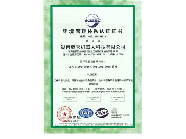 環境管理體系認證證書